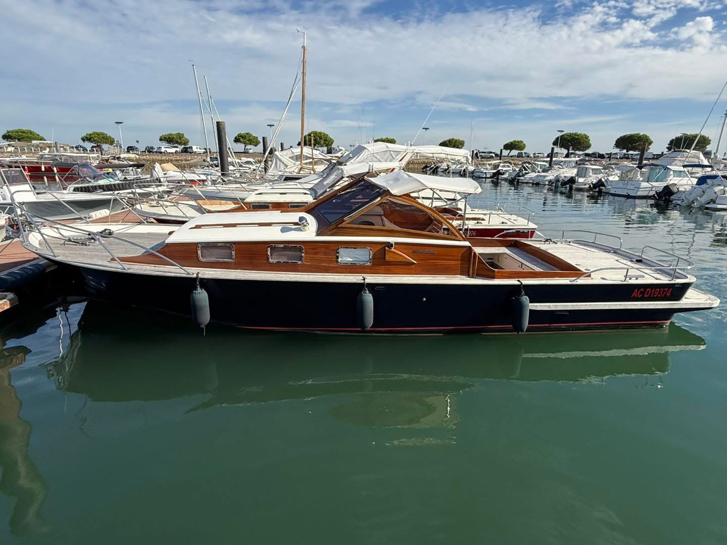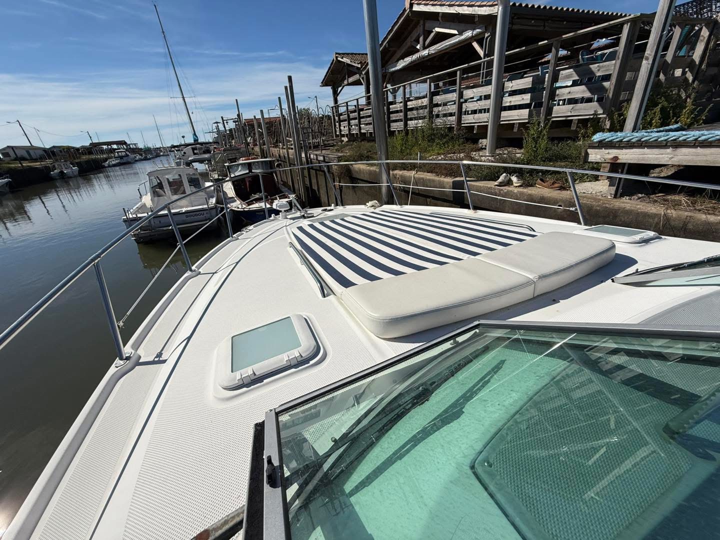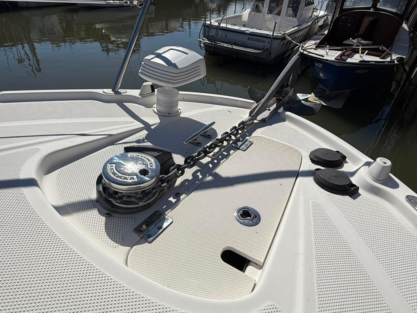 — ACM Elite 31 — Magnifique unité du chantier français, ce modèle agréable moderne et spacieux offre un confort grand luxe souligné par une ligne élégante. Proposant un cockpit arrière sécurisant, c’est à l’intérieur de son immense timonerie que l’on retrouve les points forts de l’ACM Elite : espace de vie généreux, vision à 360° grâce à ses grands pare-brise le tout baignant de lumière, belle cuisine et cabine propriétaire confortable, sans oublier une cabine passager avec lit double se glissant sous le pont. Marque : ACM — Motorisation — — Equipements — Disponible de suite sur Arcachon, envoi possible dans toute la France. Les + Hall Nautique :
