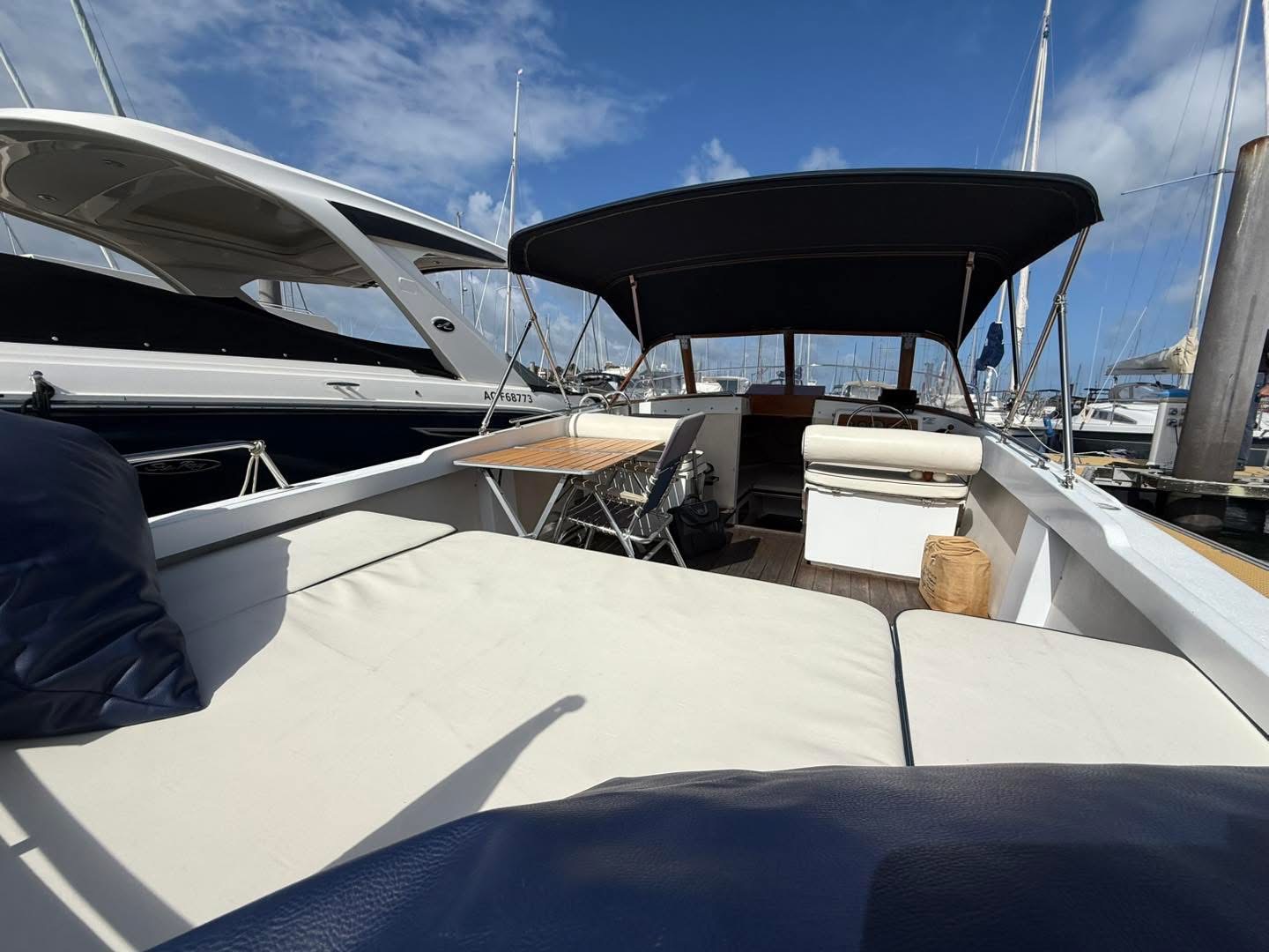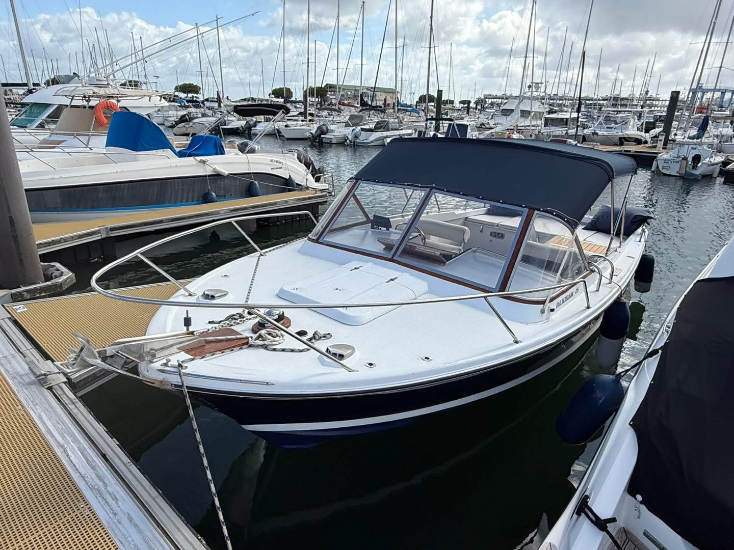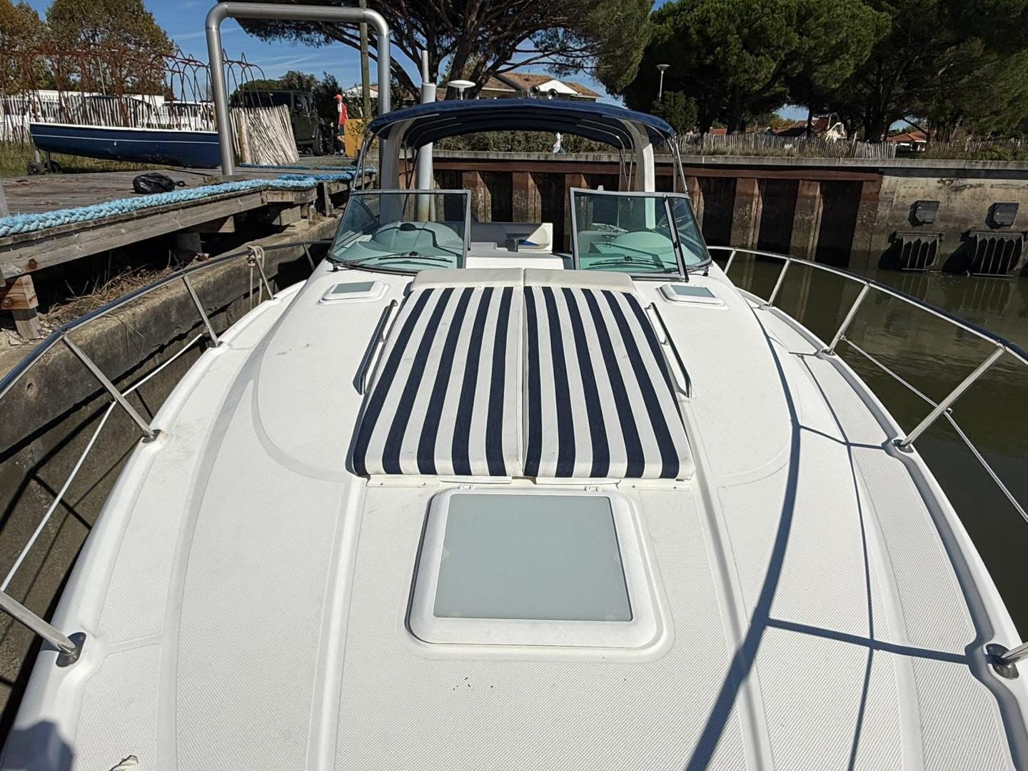 — ACM Elite 31 — Magnifique unité du chantier français, ce modèle agréable moderne et spacieux offre un confort grand luxe souligné par une ligne élégante. Proposant un cockpit arrière sécurisant, c’est à l’intérieur de son immense timonerie que l’on retrouve les points forts de l’ACM Elite : espace de vie généreux, vision à 360° grâce à ses grands pare-brise le tout baignant de lumière, belle cuisine et cabine propriétaire confortable, sans oublier une cabine passager avec lit double se glissant sous le pont. Marque : ACM — Motorisation — — Equipements — Disponible de suite sur Arcachon, envoi possible dans toute la France. Les + Hall Nautique :