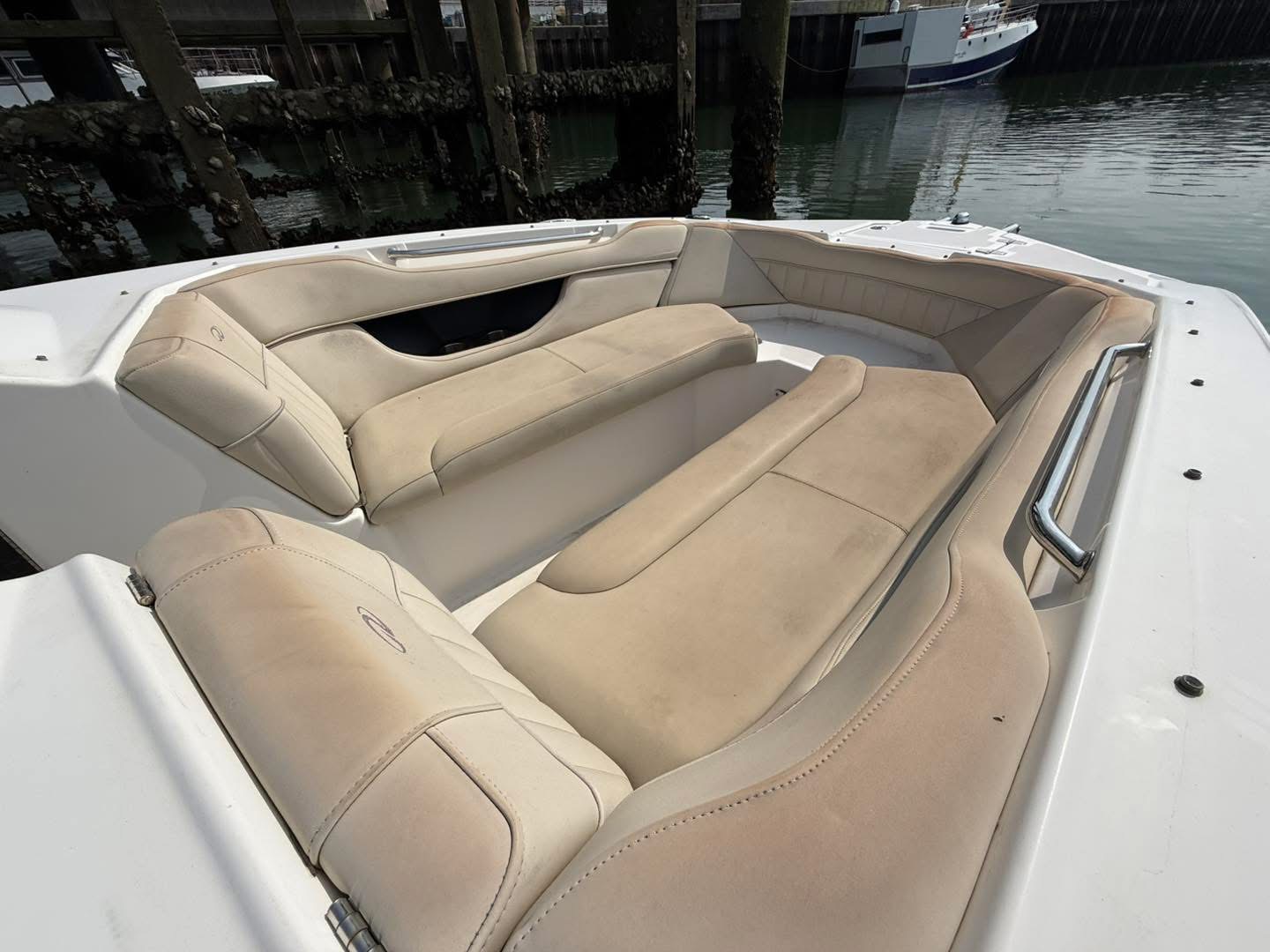 Malgré sa taille compacte, le bateau peut accueillir jusqu’à 5 à 6 personnes en toute sécurité. Il dispose également de nombreux coffres de rangement astucieusement répartis pour garder le pont dégagé et bien organisé. Que ce soit pour du matériel de pêche, des sacs ou l’équipement de sécurité, tout trouve sa place à bord.